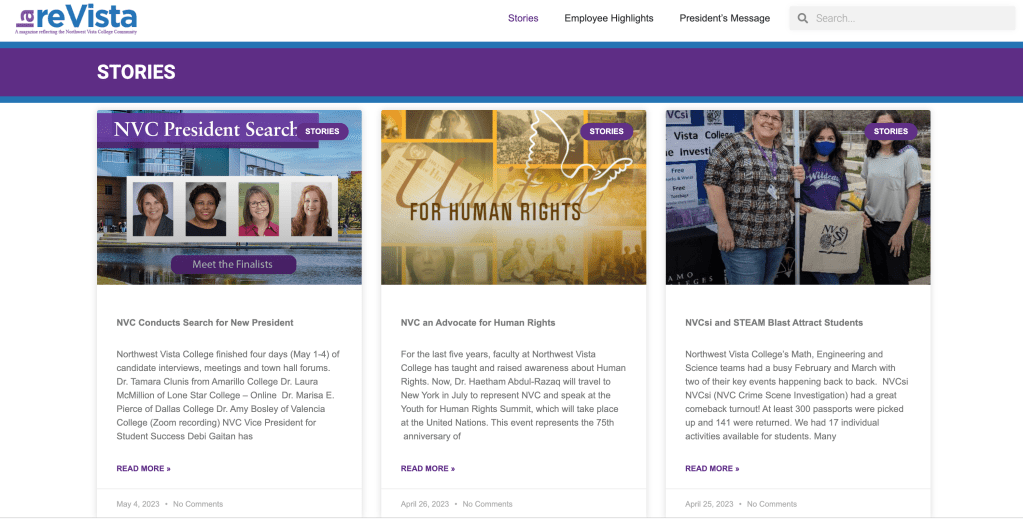 MyLaReVista.org is the employee magazine for Northwest Vista College, which is a part of the Alamo Colleges District – one of the largest two-year college systems in the South West.
