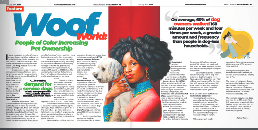 Pet owners like myself are fueling the billion-dollar pet industry. According to consumer market research company Package Facts, the U.S. pet industry continued its strong advance in 2021, surging 14% overall to $123 billion. The company also reported that pets now live in 67 million U.S. households, and multicultural pet owners are a key reason.